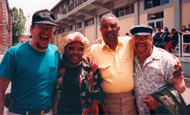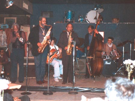 | From left to right: Bill Hardman, Clifford Jordan, Mark Elf, Lou Donaldson, Jamil Nasser, Vernel Fournier. 1985 |